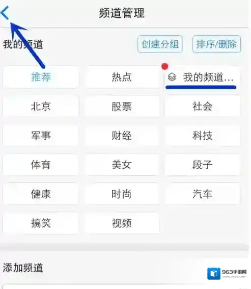 在频道管理页面“我的频道”中,可以看到刚新建的分组有。点击左上角的返回按钮。