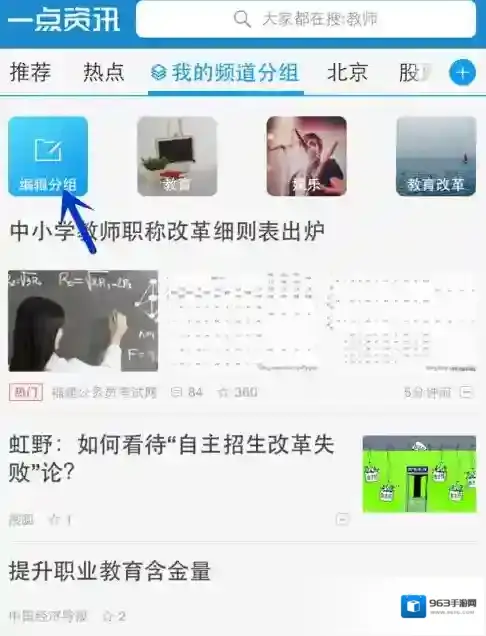 添加推荐频道。在资讯页面出现了新建的频道分组,点击“编辑分组”。下拉,就可以从“推荐频道”中添加频道到分组中了