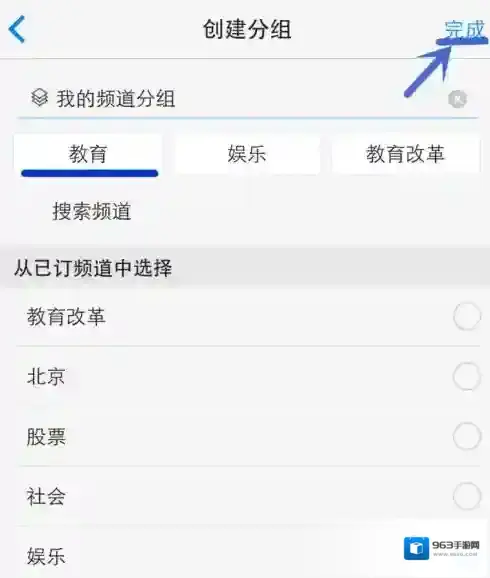 搜索添加新频道。输入想要搜索的词,点击键盘右下角“搜索”,按“+”添加,新的频道就出现在了新分组里,点击“完成”。