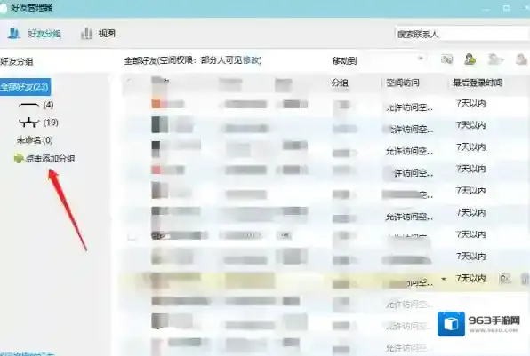 2. 在好友管理器界面,可以看到左侧的点击添加分组按钮,点击后输入分组名即可。