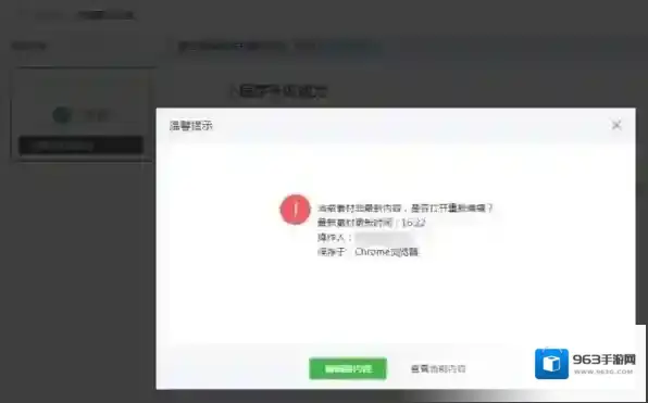 现在,当进入一个旧版本(与服务器最新的版本对比)素材草稿时,会自动出现弹框提示用户详细的操作信息: