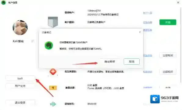 第二步,然后在弹出的窗口中,点击确定解绑按钮,即可将印象笔记账号与印象团队账号解绑了。