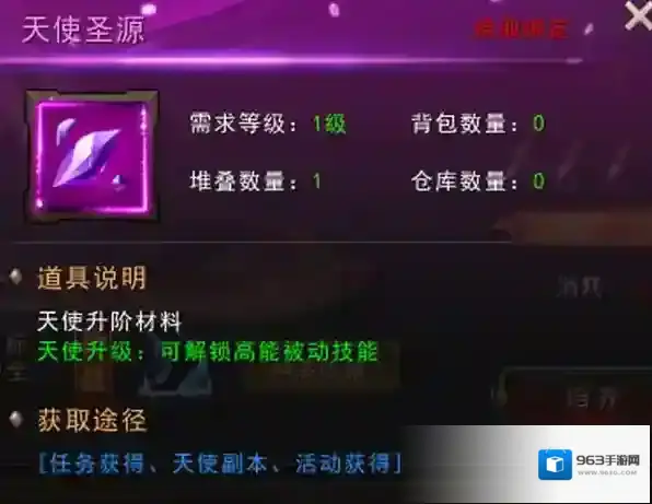 3、不过还有一种特殊情况,需要跟大家说明一下,那就是升级天使是需要天使圣源的,下面再给大家简单介绍一下获得天使圣源的途径。