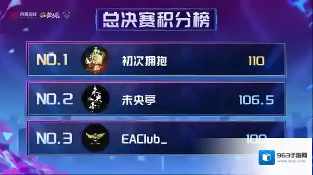 未央亭门派以106.5分紧追其后获得了亚军,季军则由EA丶Club_门派以100分收入囊中。
