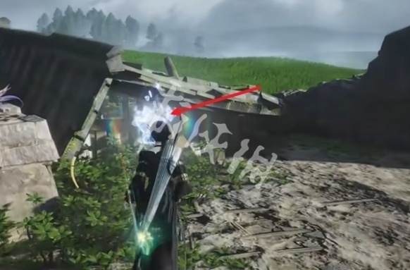 14、拿完后,抬头看箭头处的杠子上,会有个宝箱,触碰即可。