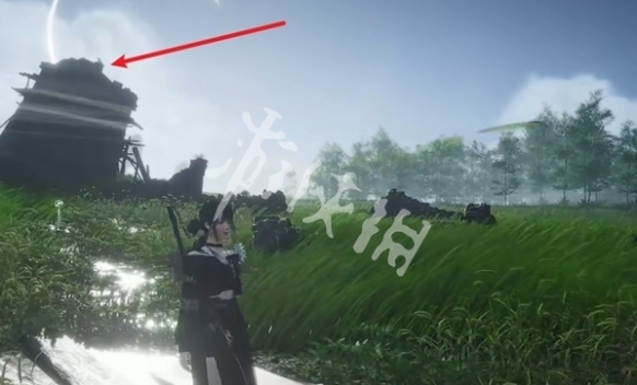 6、调整视角,去箭头处的建筑,上面有个宝箱。