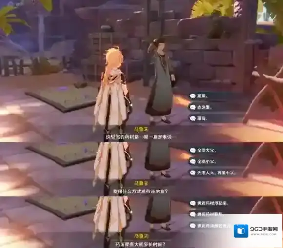 扎卡里亚会根据不同的症状开出不同的药方,在给我们口述药方的时候,游戏内文本会用蓝色字体标注出药方的关键信息,我们要仔细记好步骤。(步骤有多种分支,下图仅为其中一种,要以自己游戏内遇到的为准!)