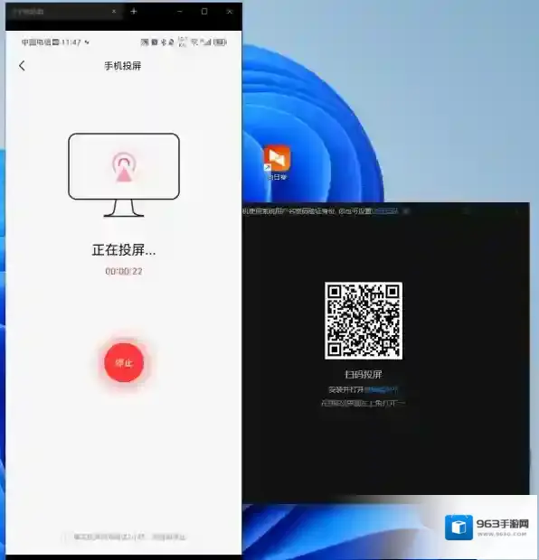 6.最后,使用手机端扫描电脑端显示的二维码即可将手机屏幕投影到电脑上。