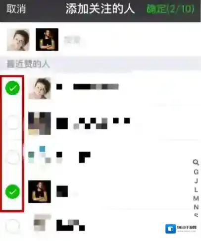 6、选择好您要关注的人之后,点击右上角的确定,一般不能超过10个人;