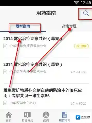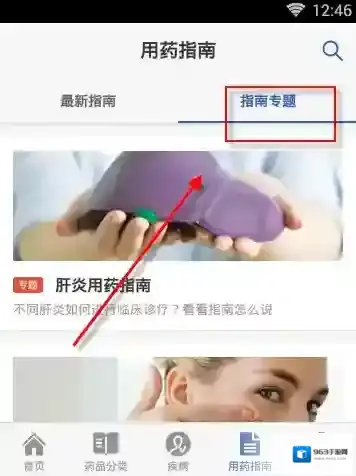 2、在“指南专题”部分可以看到各种医药品的使用指南