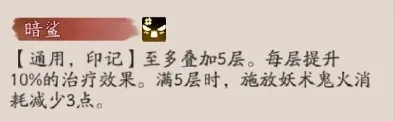 通用,印记至多叠加5层。每层提升10%的治疗效果。满5层时,施放妖术鬼火消耗减少3点。