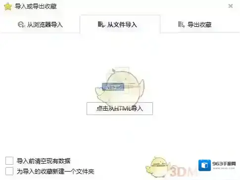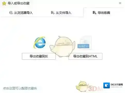 从上面的方法中可以看到每个方法都会有导入/导出字样,随便以一种方式点击打开,弹出导入或导出收藏夹窗口。