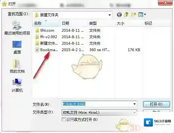 打开的浏览窗口中找到你需要导入的HTML文件,选择点击打开,