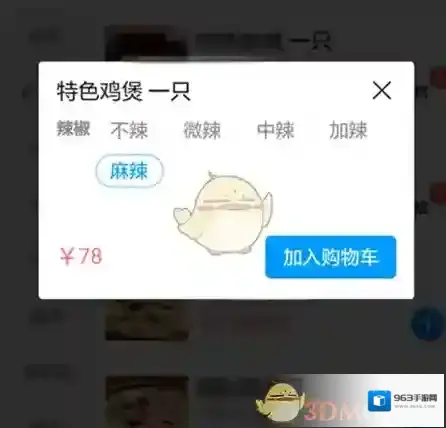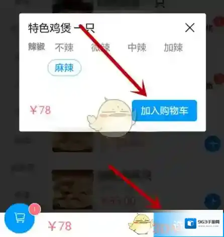 7.点击选择规格之后进入选项中口味的选择:麻辣。选择加入购物车