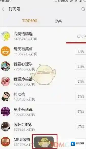 5.找到我们喜欢的订阅号,点击订阅,就可以成功的订阅米聊的订阅号。