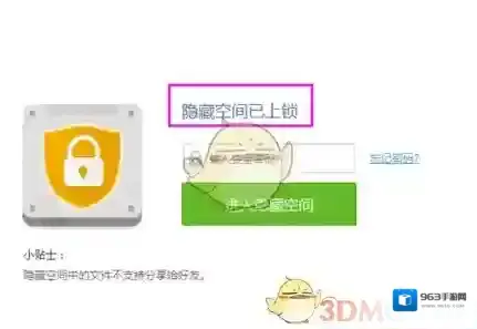 6.使用完毕后,点击立即上锁。上锁成功后,如图,这时必须输入刚刚设置的那个安全密码才能进入隐藏空间。