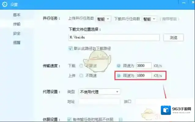 然后将上传速度设置为1000K,表示上传文件的时候最大速度不会超过这个!