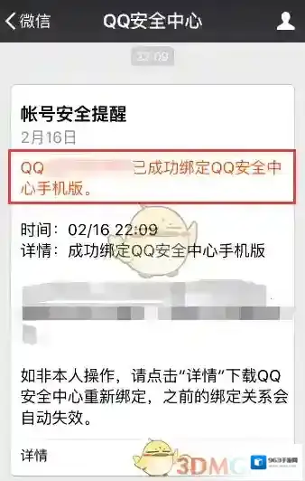 7.如果该QQ所对应的微信号关注了“QQ安全中心”公众号,成功绑定之后该公众号也会发来该QQ号成功绑定手机QQ安全中心的信息。