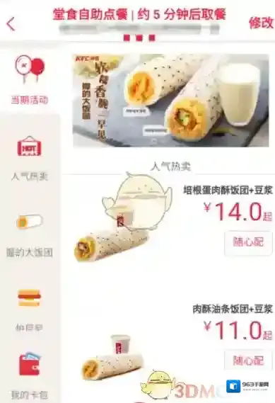 3.进入菜单,会有各种不同的分类,产品名称,图片,价格也都会标注清楚。加几块钱可以替换套餐中的那些品种,点餐甚至比在排队区更加方便。