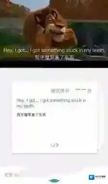 视频是分为单句配音的,按住配音按钮一句说完后,系统将自动识别准确度,并且打分。这里说一下,系统可以识别每一个单词的发音,绿色标记表示正确,红色表示错误。