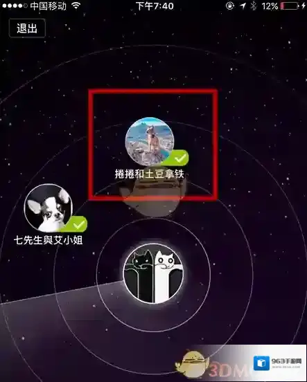 3、启动雷达,已经是好友的如图中左侧小狗头像,非好友如图中圈定的头像。