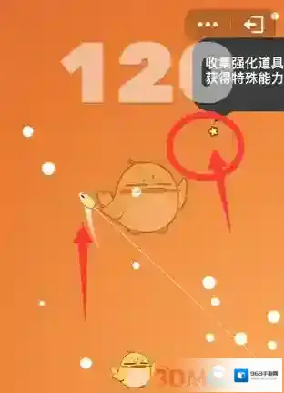 为了获得更多的分数,在击球的过程中,你还可以收集一些道具,帮助你得到更多的分数。比较下图中的五角星的形状,只要你的引力球多道具上划过,就可以获得这个道具。