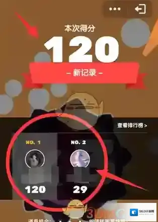 游戏结束后,会出现你的得分提示,并会就你的得分进行好友间排名,排名的情况也会显示在里面。如下图所示。