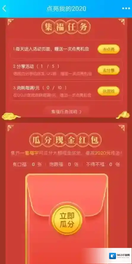 《QQ》点亮我的2020集福瓜分红包活动玩法介绍