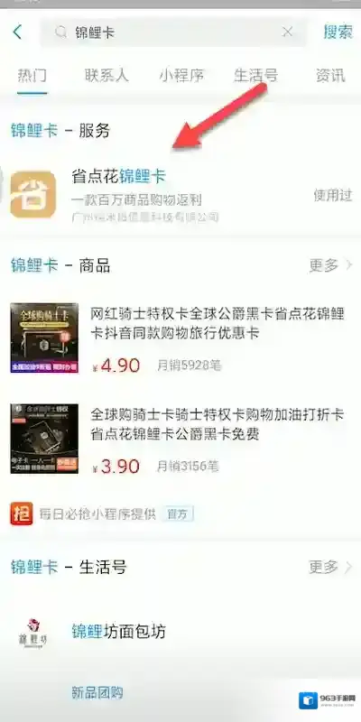 2、在搜索栏中搜索“锦鲤卡”,并进入锦鲤卡领取界面。