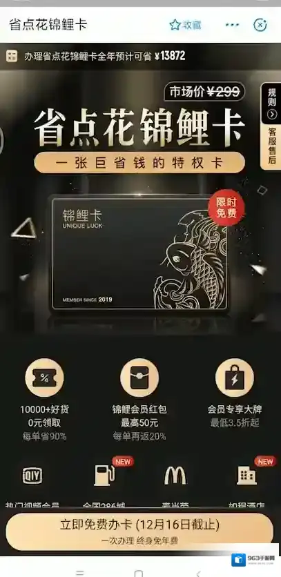 锦鲤卡尊享超值生活权益,全球大牌优惠1折起:肯德基、星巴克、奈雪の茶、85℃甜品等餐饮大牌优惠低至1折;视频网站会员低至4折起;免费洗车、加油优惠;旅游出行4折起;百万意外险、重疾险等特权免费领 。