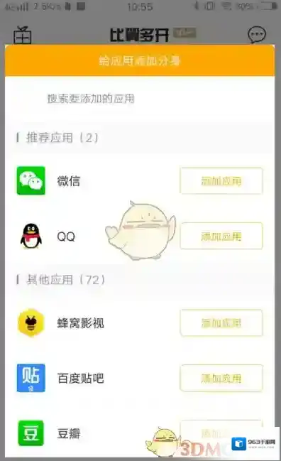 4、将微信、QQ或其他运动APP添加到比翼多开并登陆