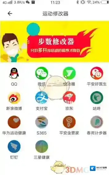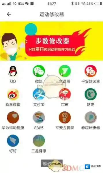 5、在专属应用中打开运动修改器,未添加的为深灰色虚化处理