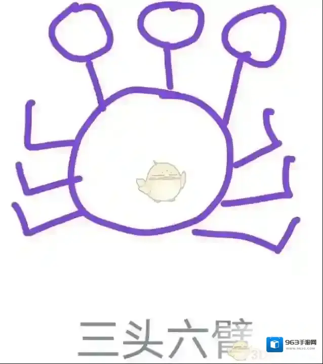 4、最最简单的画法就是下面这种,三个头,六只手(有点像螃蟹):