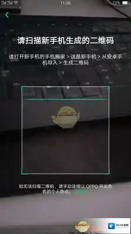 7、然后扫描新手机上的二维码,连接成功以后旧手机上的资料就会导入新手机了。