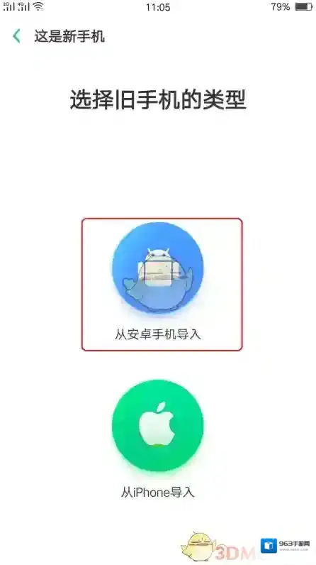 3、然后选择就手机的类型,这里以“从安卓手机导入”为例。