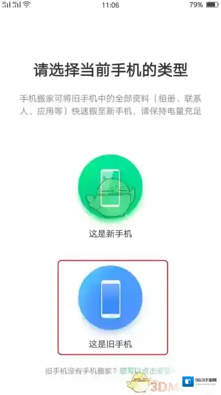 5、然后打开旧手机,同样点击”手机搬家“进入。