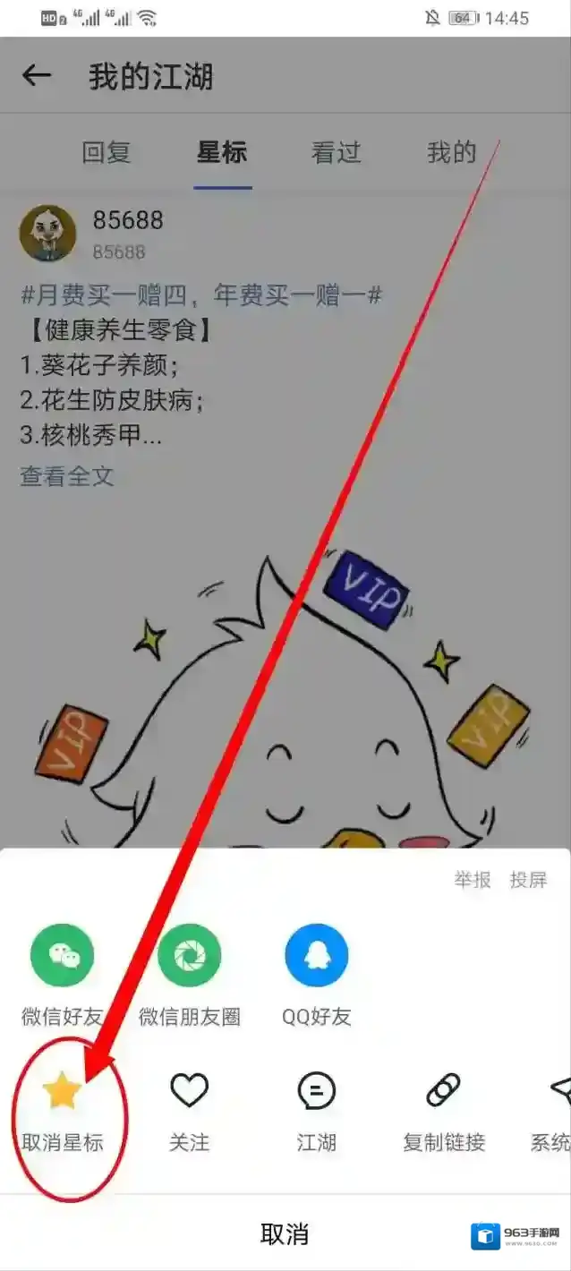 5、在弹出的选项中,点击左下方的“取消星标”即可。
