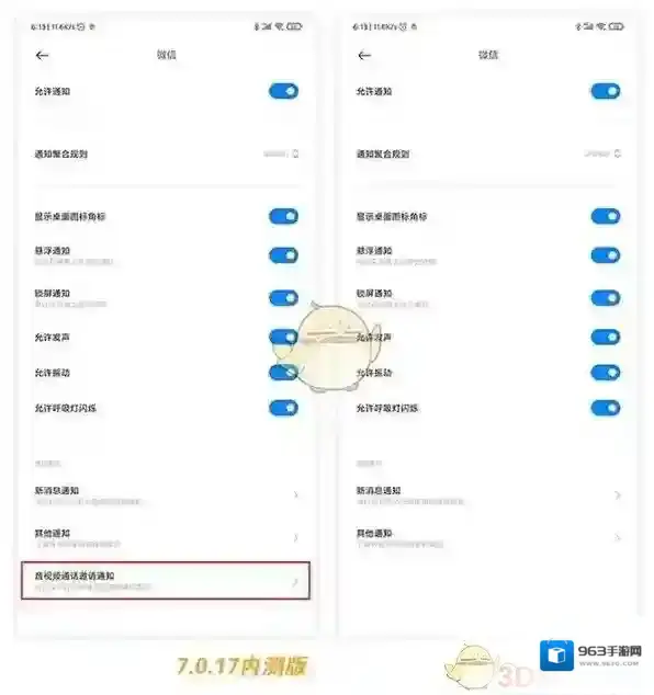 通知面板也有了一点小变化,增加了 ” 音视频通话邀请通知 “。也就是说,你现在可以将音视频通话和普通消息 的通知设置成不同样式,以避免重要信息出现遗漏。