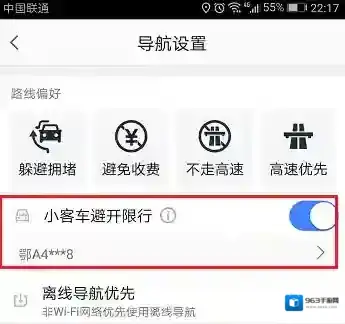 4、在导航设置里面找到“小客车避开限行”,点击进去,如下图所示: