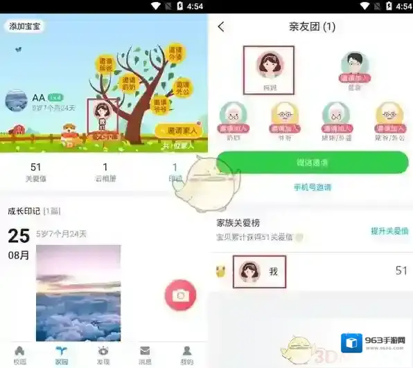 4、也可以通过家园 – 点击“我”进入,或者我的-邀请家人-我进入个人档案页面;