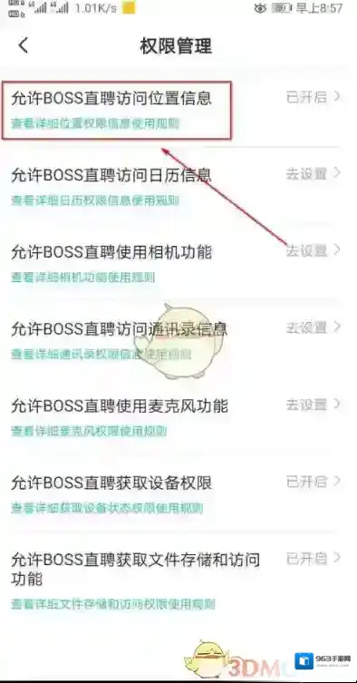 5、最后大家可以看到此页面“允许Boss直聘访问位置信息”,点击进行开启权限即可。
