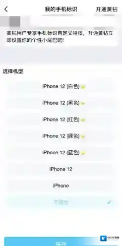 4、点击后跳转至我的手机标识界面,然后选择机型分类中我们就可以将机型设置为不显示了,这样发出的说说下方将不会带上你的手机型号。