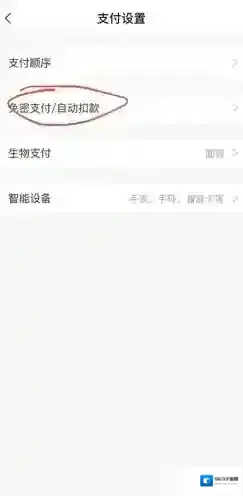 6、在这里找到“支付设置”的功能并点击,然后在点击“免密支付/自动扣款”的功能,在这里相关扣款的app也是能够全部找到,我们找到“免费追书”并点击取消该功能即可。