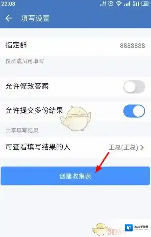 6、在填写设置页面,完成设置,点击“创建收集表”;