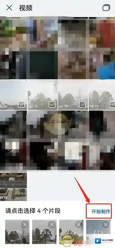 5、根据要求从相册中导入视频选择开始制作。