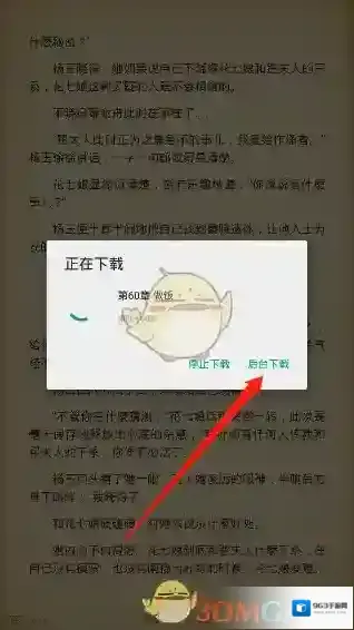 4、这时等待系统开始下载我们选择好的章节即可,也可以点击“后台下载”,继续阅读我们的小说。