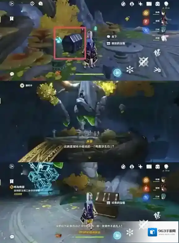 ※寻找到「鸣霞浮生石」,经过一段对话后,获得珍贵的宝箱,完成此阶段任务
