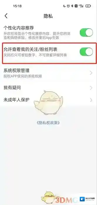 4、将图中的允许查看我的关注/粉丝列表右侧按钮关闭即可。