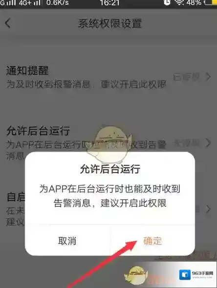 5、在允许后台运行的提示里,只需要点击确定即可。