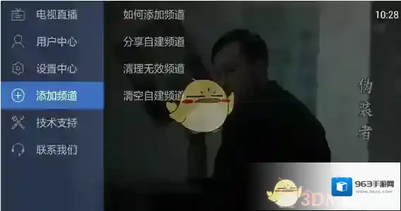 1、运行电视家,进入直播,按OK键进入频道列表,然后左键,在频道分类中找到“自建”